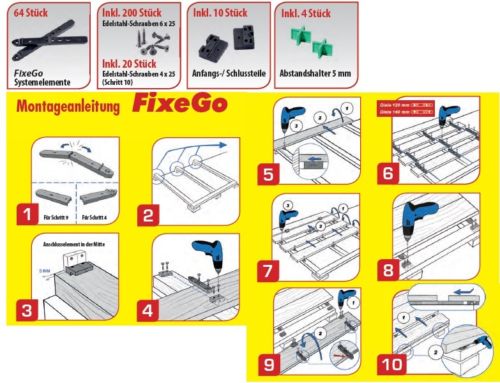 • Eine Packung ist ausreichend für 4 m² bei Dielenbreite 140 mm oder 3,5 m² bei Dielenbreite 120 mm