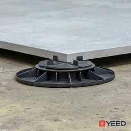 Pedestal for tiled terrace, concrete paving or grating with a minimum thickness of 2 cm. Height adjustable from 25 to 40 mm using the adjustment ring located under the head. Can be placed on any support without fixing and does not require a joint. Installation in less than 3 days: provide 4 studs per slab. Max load: 1 ton. Robust, the pedestal resists frost, UV, temperatures from -40° to +60°. Complies with DTU 43.1 and 51.4, made in France. 10 year warranty. For more comfort, think about anti-noise damping wedges! Wedge sold separately.