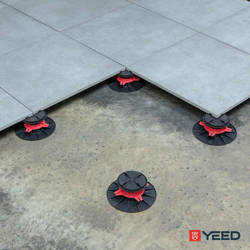 Pedestal 60/90 mm for paving terrace. Adjustment to the millimeter thanks to the ring located under the head of the pedestal. Compatible with gratings, concrete slabs and tiles over 2 cm thick. Seamless installation, achievable in less than 3 days. Resistant and durable: supports up to 1 tonne of load, guaranteed for 10 years, complies with DTU 43.1 and 51.4. Withstands frost, UV, temperatures from -40° to +60°. French made. For more comfort, think about anti-noise damping wedges! Wedge sold separately.