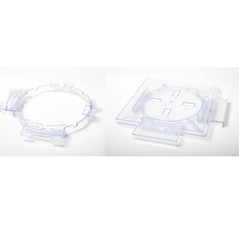Vérindal+ fixing kit for side finishes. This fixing kit includes a paving plate and a trim support. Fix the cladding support on the base of your H Vérindal+ pedestal and the paving plate on its head. Thus, make your job easier by easily finalizing your edges. This fixing kit makes it possible to maintain the vertical pavings in place. Transparent colour, ideal for light porcelain stoneware tiles.