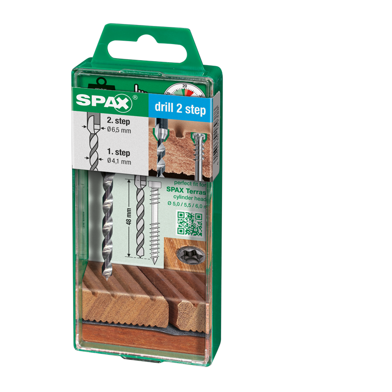 Step drill bit with a diameter range of 4.1 to 6.5 mm, specially designed for pre-drilling and installation of SPAX joist screws.