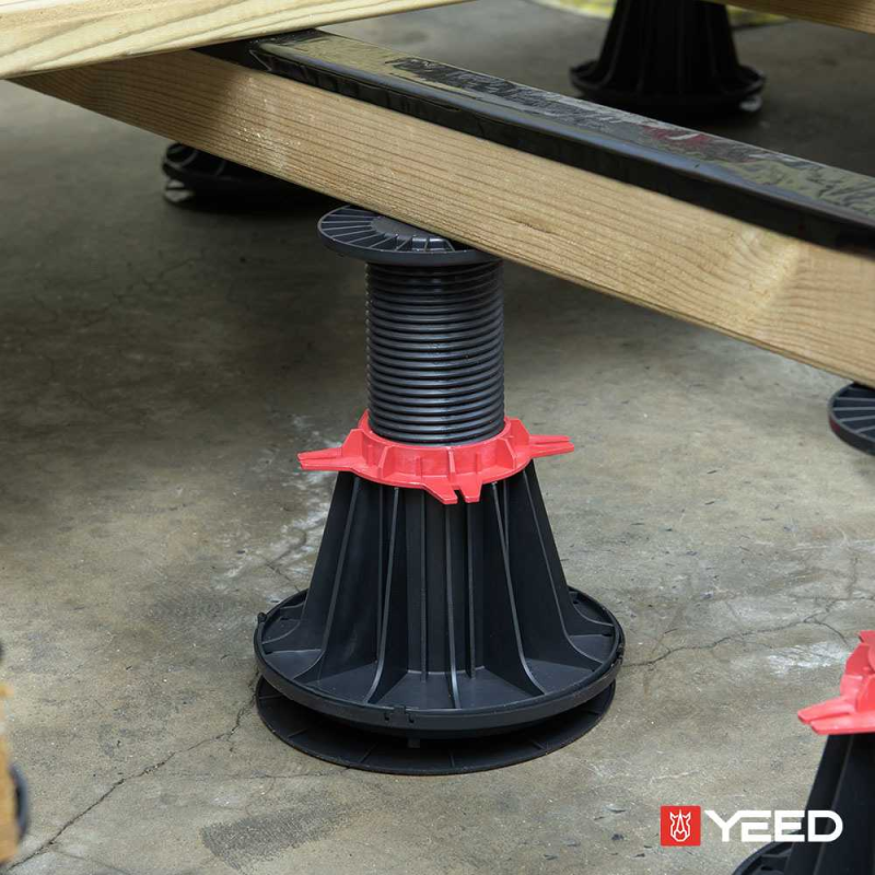 Self-leveling pedestal for joist 175/285 mm from the YEED brand. Made in France, it is guaranteed for 10 years. Robust, it supports up to 1 ton of load, resists extreme climatic conditions as well as acid and chemical products. Use: installation of raised wooden or composite terrace for pedestrian use. Height adjustment from 175 to 285 mm. Quick and easy installation: no need to pour a concrete paving, is placed directly on the ground without fixing.