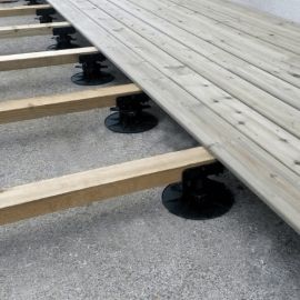 Plot ajustable de 55 a 75 mm para terrazas de madera o composite Vérindal. Estable, resistente y fácil de instalar, este soporte para viguetas permite construir una terraza sin obras pesadas, garantizando una estructura ventilada, duradera y perfectamente nivelada. Compatible con lamas de madera natural y composite.