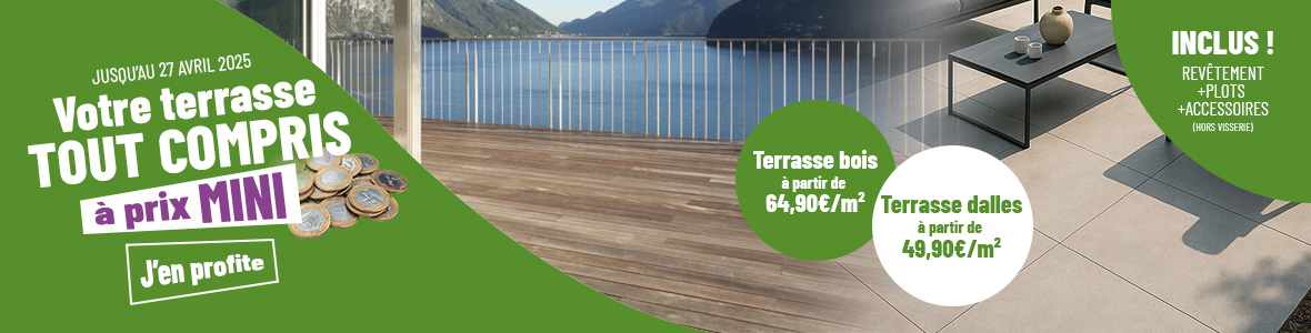 Le printemps est là ! Sublimez vos extérieurs avec notre gamme de terrasses : bois, composite ou grès cérame, il y en a pour tous les goûts et tous les budgets !