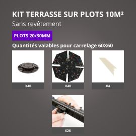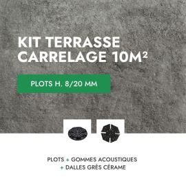 Ce kit ne contient pas de dalles pour votre terrasse, mais vous pouvez commander le modèle de votre choix dans notre rubrique carrelage extérieur : grès cérame, dalles béton ou pierre naturelle sont disponibles.