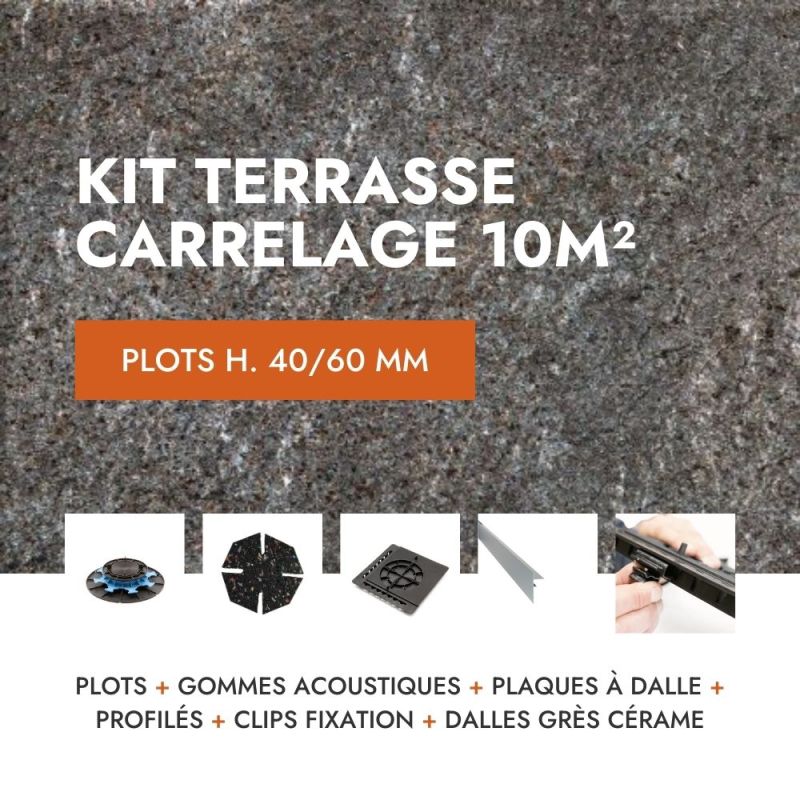 Les kits avec des plots de hauteur 40/60 mm et 50/80 mm incluent également des clips de fixation et des profilés de finition clipsables en aluminium gris ou gris anthracite. Ces profilés assurent des bords nets et élégants, ajoutant une touche moderne à votre terrasse. Faciles à poser grâce aux clips, ils offrent une finition soignée et professionnelle.