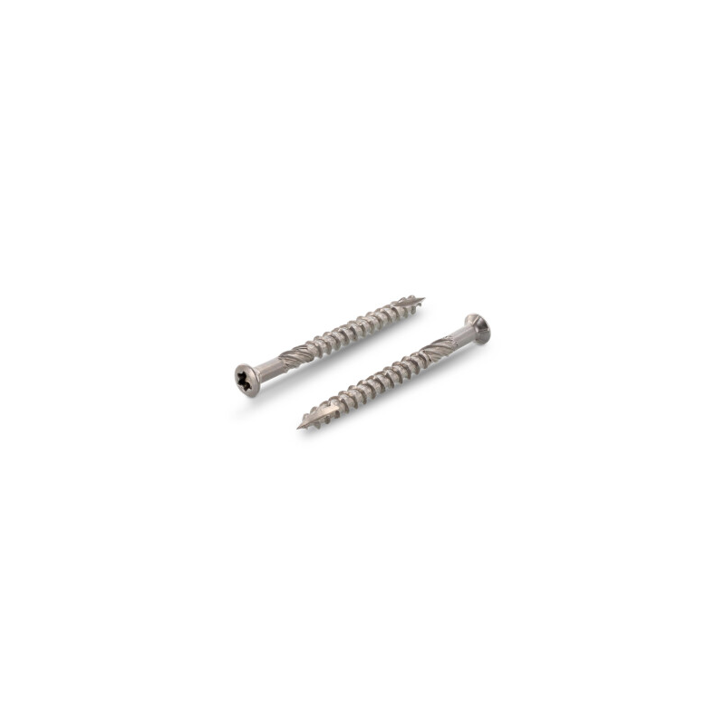 Boîte de 100 vis, idéales pour les constructions en bois comme les terrasses. Se prête parfaitement à une utilisation dans les bois durs tels que le Massaranduba.
