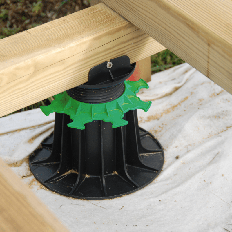 Il piedino per terrazza in legno Jouplast è progettato per realizzare le fondazioni di terrazze in legno o composito. Questo supporto per travetti è regolabile in altezza da 140 a 230 mm, adattandosi perfettamente alle caratteristiche del terreno. L’installazione di una terrazza su piedini è rapida e semplice, senza lavori di scavo o opere murarie pesanti.